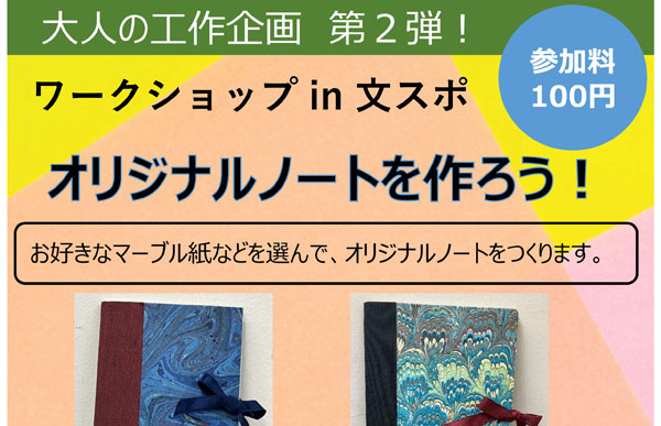 大人の工作企画第2弾!お好きなマーブル紙などを選んで、オリジナルノートをつくります。