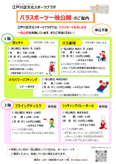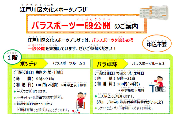 ボッチャやパラ卓球やフライングディスク等の一般公開のご案内です。